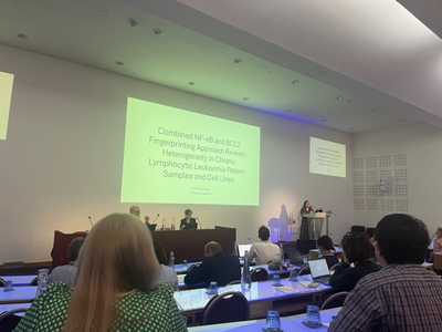 Firstly Eleanor presented her research entitled ‘Combined NF-κB and BCL2 fingerprinting approach reveals heterogeneity in chronic lymphocytic leukaemia patient samples and cell lines’ followed by Lauren presenting her research entitled ‘Biological evaluation of selective second-generation CDK9 inhibitors in MCL1-high CLL and Richter’s transformation’. Both gave fantastic presentations and we were very proud of them both.